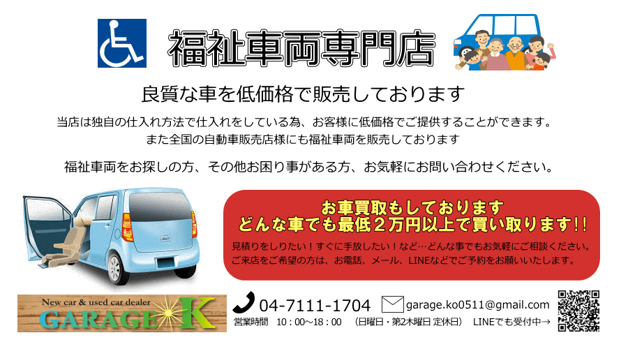 安心できる良い福祉車両をお安く提供できるのがGAREGE・Kです!